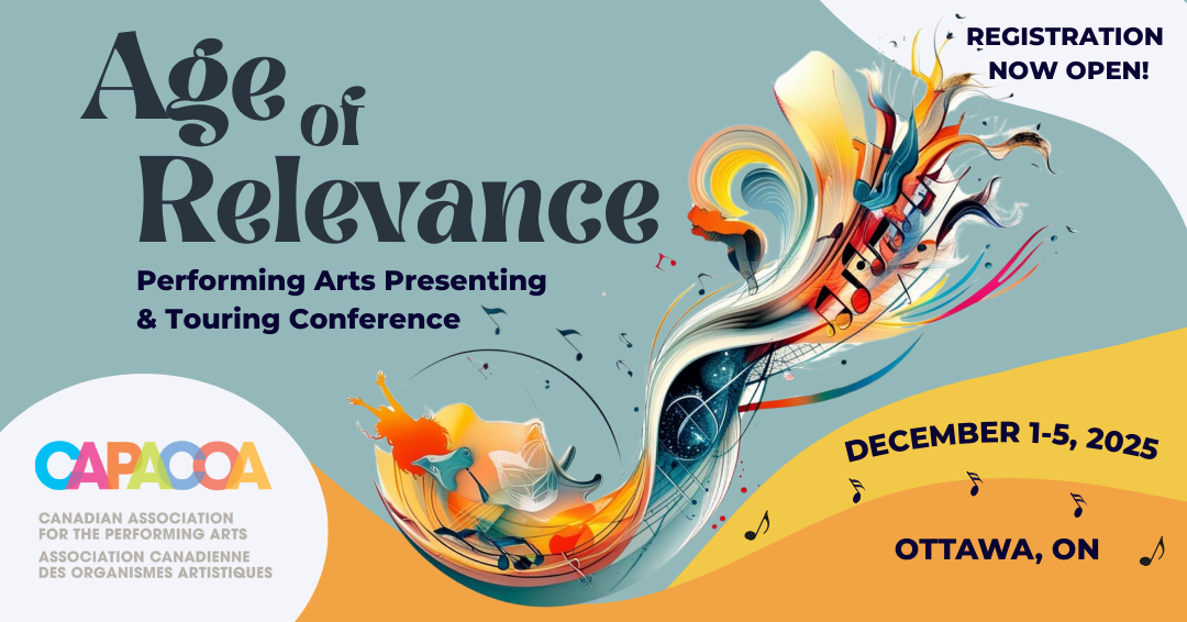 Join CAPACOA from December 1-5, 2025 in Ottawa to experience the Age of Relevance: a bold, multi-disciplinary conference that brings together Canada’s national and international presenting and touring sector. Be part of CAPACOA’s most significant conference yet as we explore the evolving role of the performing arts in society and how to effectively work within it.