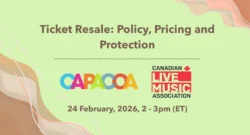 Presenters, producers, and live performance professionals, join CAPACOA and the Canadian Live Music Association (CLMA) on February 24, 2026, from 2:00 to 3:00 p.m. ET on Zoom, for a town hall on ticket pricing, legislation, and how current policies shape resale. Register here Ticket resale has becom...Read More