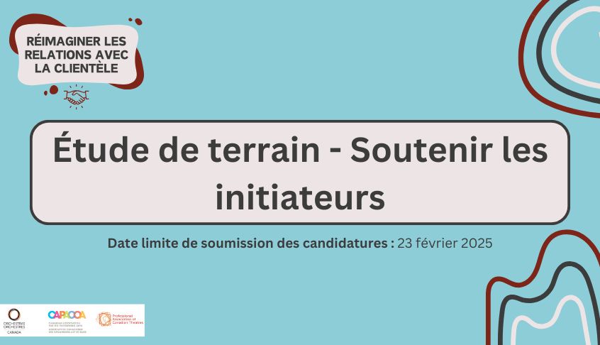 Appel à manifestations d’intérêt : pour les organisations canadiennes des arts de la scène souhaitant participer à la cohorte nationale de l’étude de terrain Soutenir les initiateurs dans le cadre du projet Réimaginer les relations avec la clientèle.