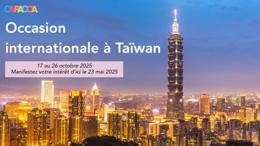Les expressions d’intérêt sont maintenant ouvertes pour les DIFFUSEURS et ARTISTES canadiens qui cherchent à recevoir un soutien financier pour se joindre à CAPACOA pour une semaine de réseautage, de présentations et de rencontres à Taïwan.