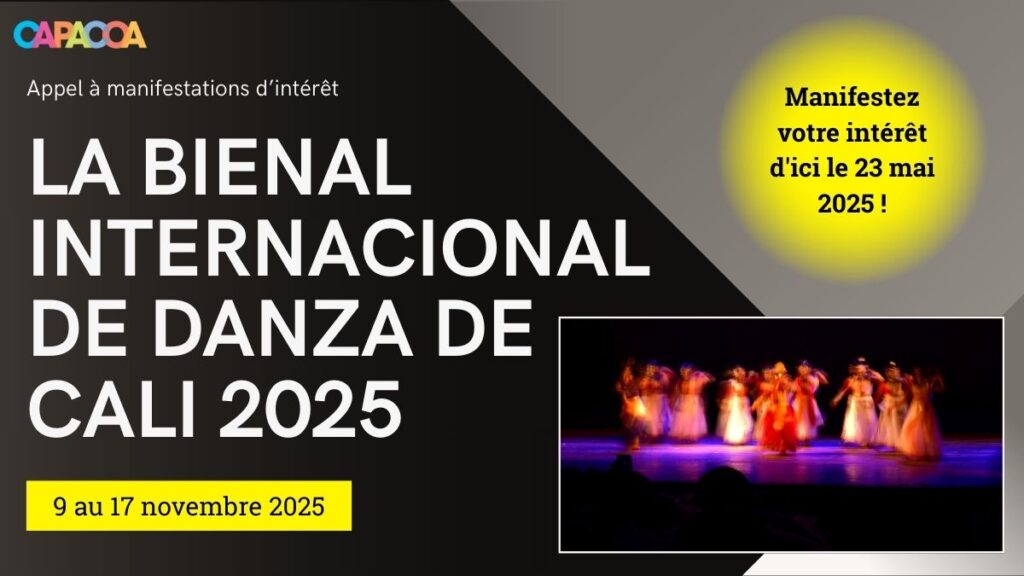 Les manifestations d’intérêt sont maintenant ouvertes pour les DIFFUSEURS d’arts canadien(ne)s qui cherchent à recevoir une aide financière pour participer au Bienal Internacional de Danza de Cali à Cali, en Colombie, du 9 au 17 novembre 2025.