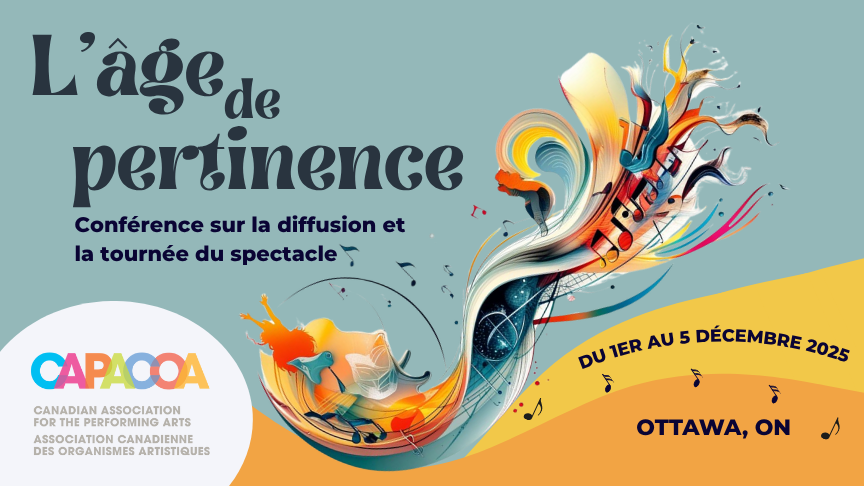 La Conférence 2025 de CAPACOA : L’Âge de pertinence, qui se tiendra du 1er au 5 décembre 2025 à Ottawa, explorera le rôle en constante évolution des arts de la scène dans la société en réunissant le secteur national et international de la diffusion et de la tournée au Canada.