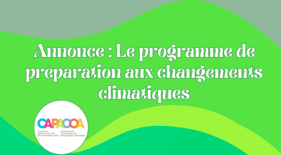 La conférence de cette année s’accompagne d’une annonce spéciale : CAPACOA a lancé un Programme de préparation aux changements climatiques (PPCC) afin d’aider le secteur des arts de la scène canadien à faire face aux impacts des changements climatiques. En partenariat avec Ian Garrett du Centre pour les pratiques durables dans les arts (CPDA), le programme développera des outils pratiques pour aider les organismes des arts de la scène à s’adapter, sous la direction d’Erin Kennedy.