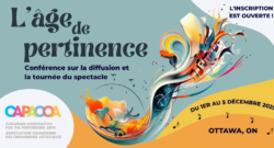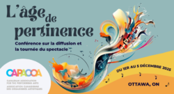 Explorez le rôle en évolution des arts de la scène dans la société lors de la Conférence CAPACOA 2025 : L’Âge de pertinence, qui aura lieu du 1er au 5 décembre 2025. Rassemblant le secteur canadien et international de la diffusion et de la tournée, L’Âge de pertinence propose des conférenciers inspi...Lire la suite