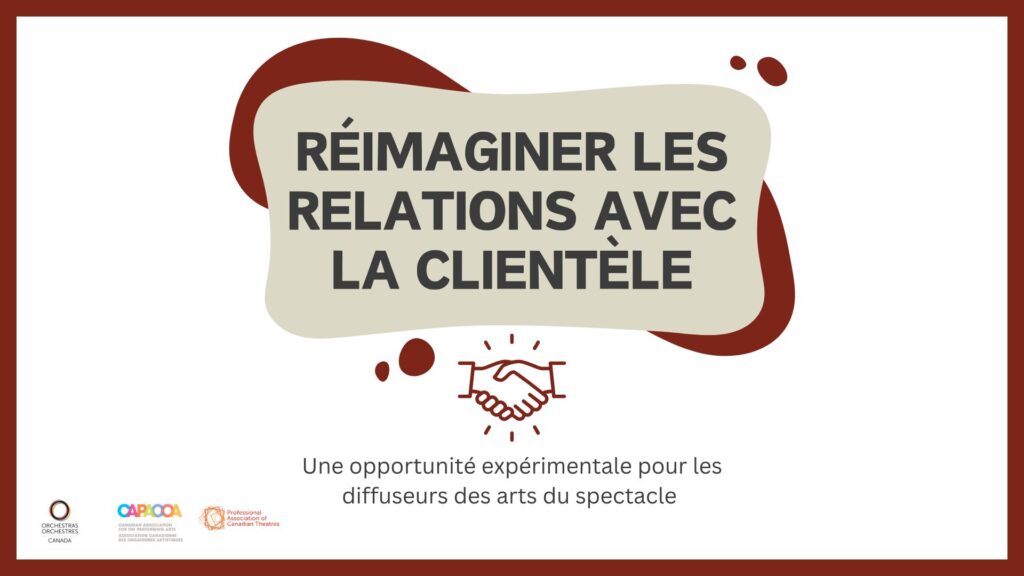 En novembre 2024, Orchestres Canada, PACT, le Centre national des Arts et CAPACOA ont réuni des représentants de partout au pays afin d’explorer des approches novatrices pour renforcer la fidélité du public. Cette rencontre a marqué le lancement du projet Réimaginer les relations avec la clientèle — un effort collaboratif visant à accroître la résilience et la fiabilité des publics canadiens dans l’ère post-COVID.